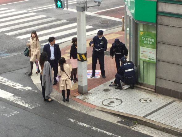 窓ふきをしていたら、会社の前の四つ角のところに警察官が・・